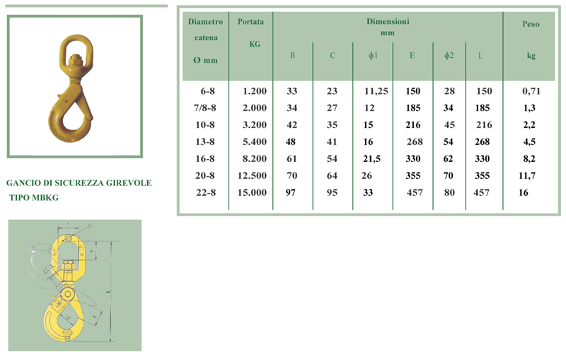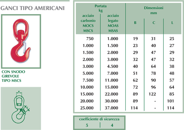 Gancio girevole MSCS o MSAS