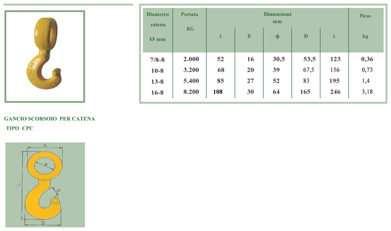 Gancio scorsoio per catena CPC