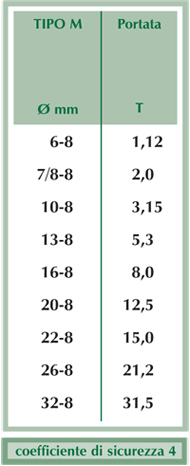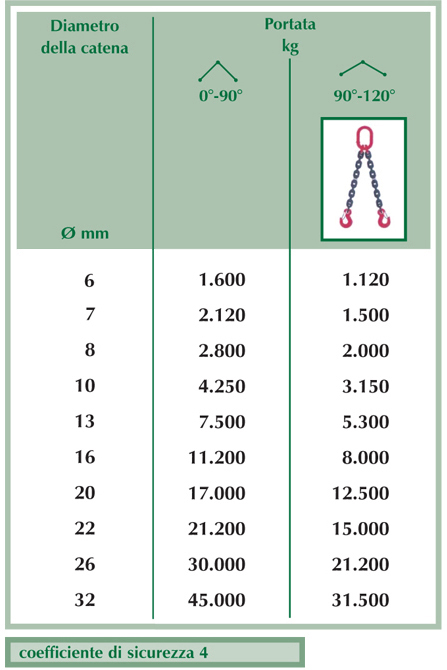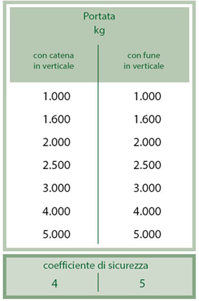 Il coefficiente di sicurezza per le catene di sollevamento ed i suoi accessori è 4.