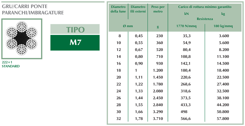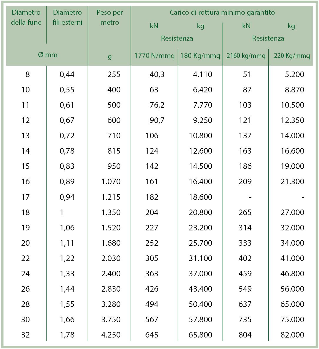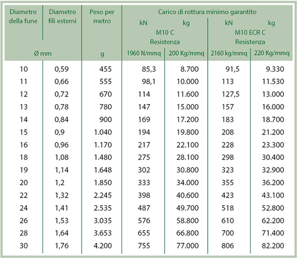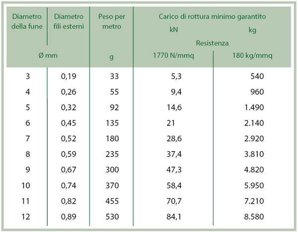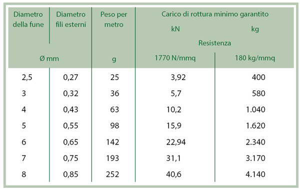Rimandiamo ai links “Consigli D’uso” e “Caratteristiche per le funi metalliche” per tutte le caratteristiche d’uso e manutenzione.