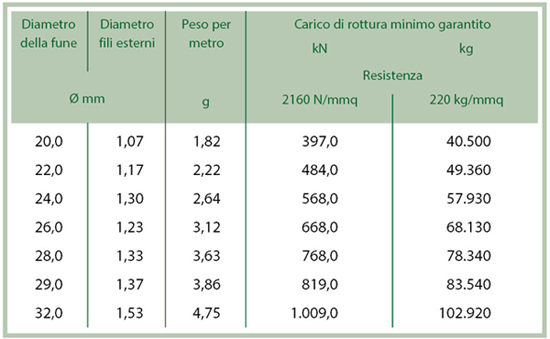 – il carico di rottura dei cavi acciaio espresso in Kg o kN.