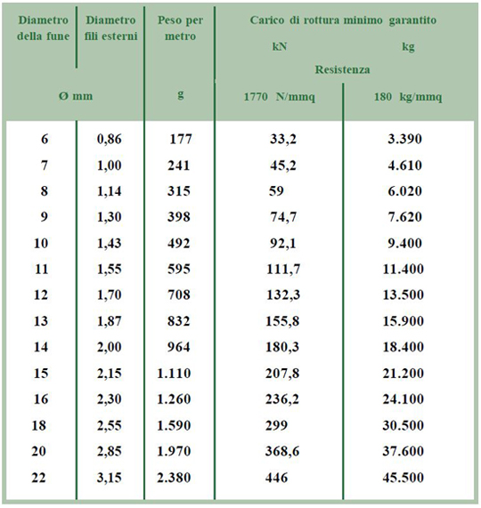Rimandiamo ai links “Consigli D’uso” e “Caratteristiche per le funi metalliche” per tutte le caratteristiche d’uso e manutenzione.